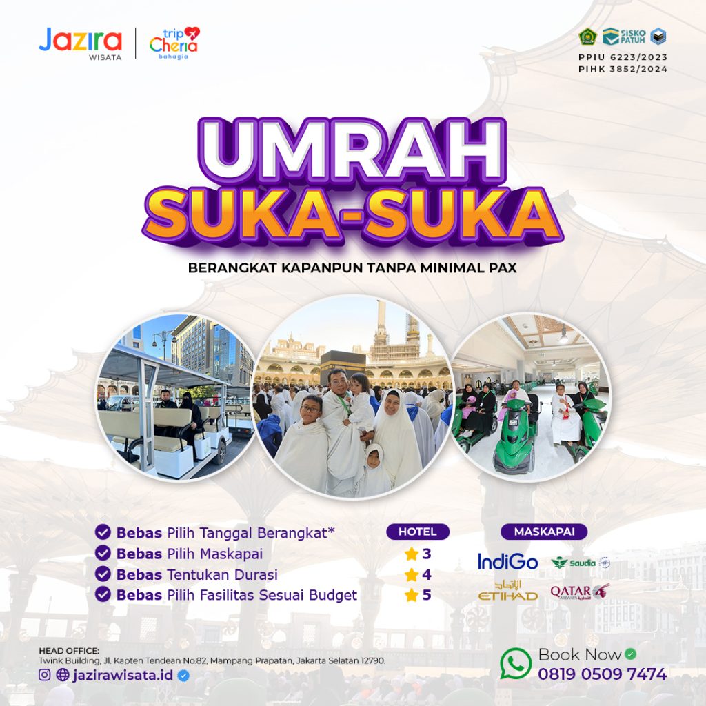 Di PT. Jazira Halal Wisata, pelayanan bukan hanya tentang bisnis, tetapi tentang membangun ikatan emosional yang mendalam dengan setiap jamaah yang mempercayakan perjalanan suci mereka kepada kami. Kami percaya bahwa pelayanan yang optimal tidak hanya melibatkan transaksi, tetapi juga membentuk kenangan berharga dan ikatan yang tulus di setiap langkah perjalanan.